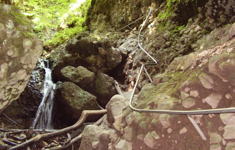 Kb. 9 km. Dömös – Szent-kápolna- Rám-szakadék – Júlia-forrás – Szakó-nyereg – Ilona-pihenő – Szakó-nyereg – Körtvélyes – Dömös